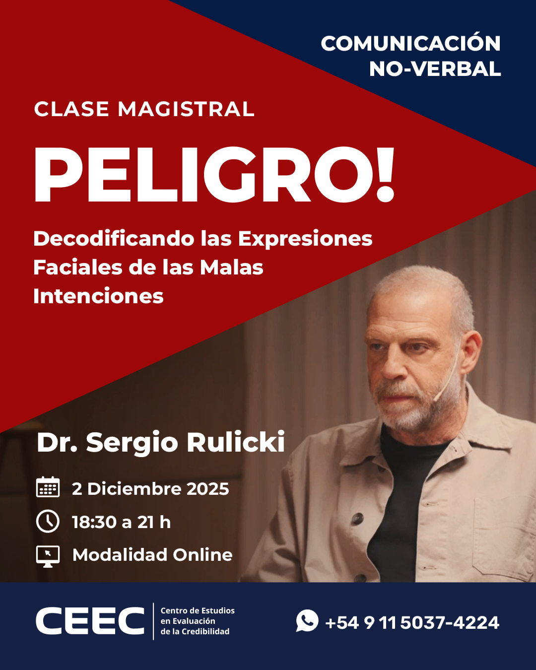 Si tenés alguna consulta o querés inscribirte a la Clase Magistral del Dr. Sergio Rulicki de Evaluación de la Peligrosidad el martes 2 de diciembre 2025 podés completar el siguiente formulario con tus datos y nos pondremos en contacto contigo a la brevedad.